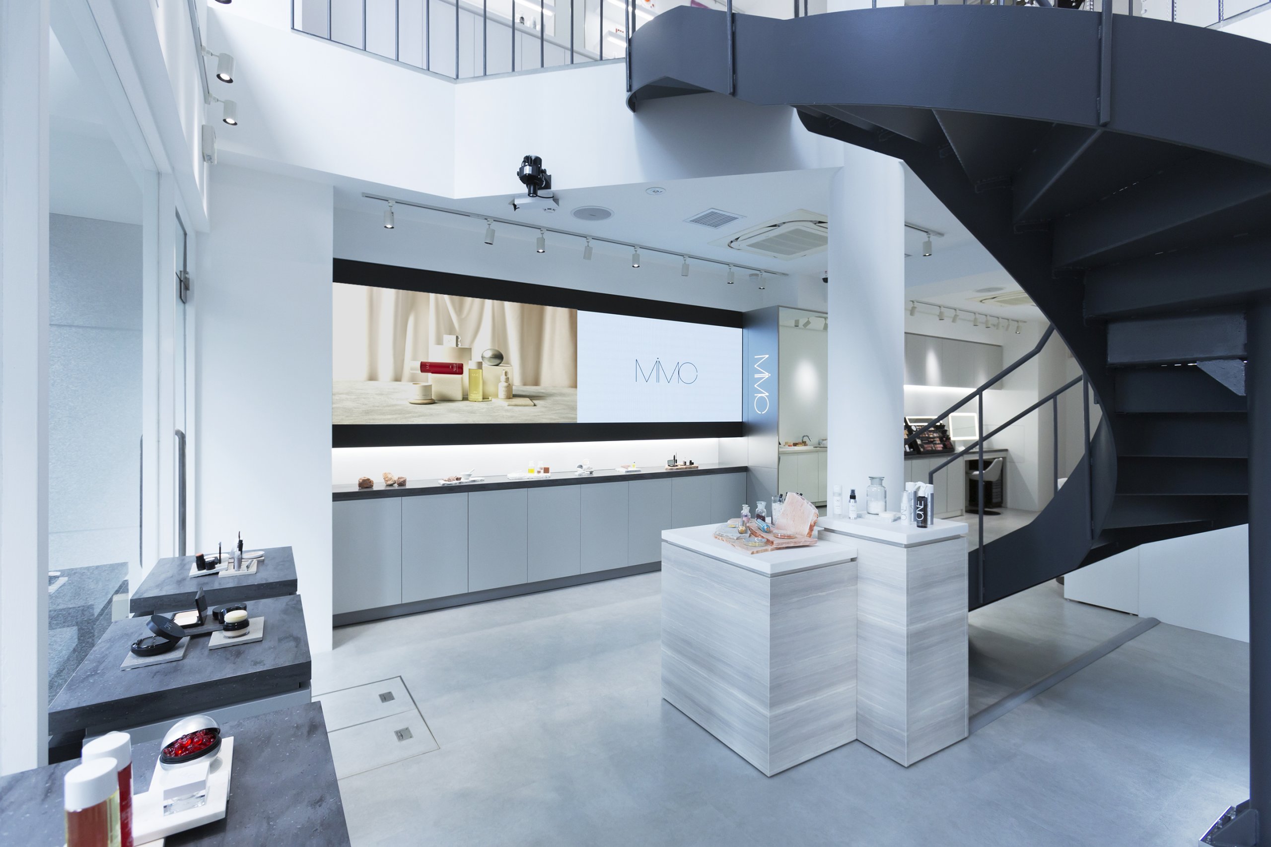 株式会社MiMCの「自然の力で本来の輝きを引き出していく」というコンセプトを、白を基調とした店舗に溶け込む高精細のLEDビジョンを使用してブランドのイメージを表現しました。