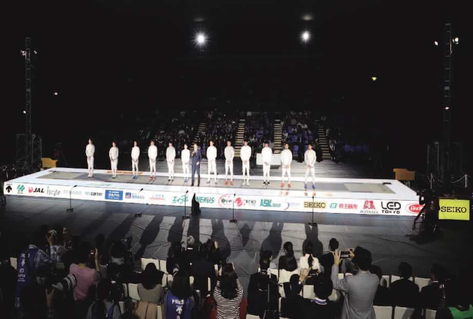 「フェンシング高円宮杯/全日本選手権2017」ピストという競技場を囲うように、上面と側面をLEDビジョンを設置。