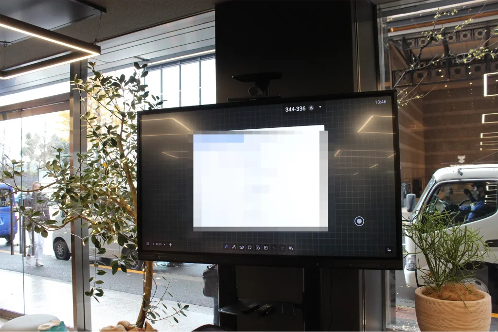 IWBに関しては、大型のモニターを会議室に置いて皆で打ち合わせの資料を放映して内容を共有するというのはよく事務所でも行っていたのですが、そこにネット回線が繋がっていて、WifiでもPC・スマートフォンとも画面を共有できたり、大きいものですけど、キャスターが付いているので会議室から会議室まで動かすのも容易ですし、もちろん機能的にはホワイトボードのような活用が出来たり、同じ画面の中でインターネット検索が行えたり、非常に使い方の幅が今までのただのモニターとは違ってくるな、というところがイメージしていたもので、(実物は)その通りだったなと思いますね。