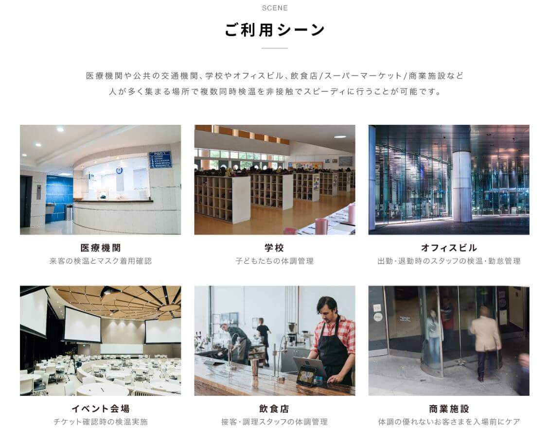 AIによる顔認識機能と表面温度の測定機能を併せ持つデバイスで、大掛かりな設置工事などは不要です。