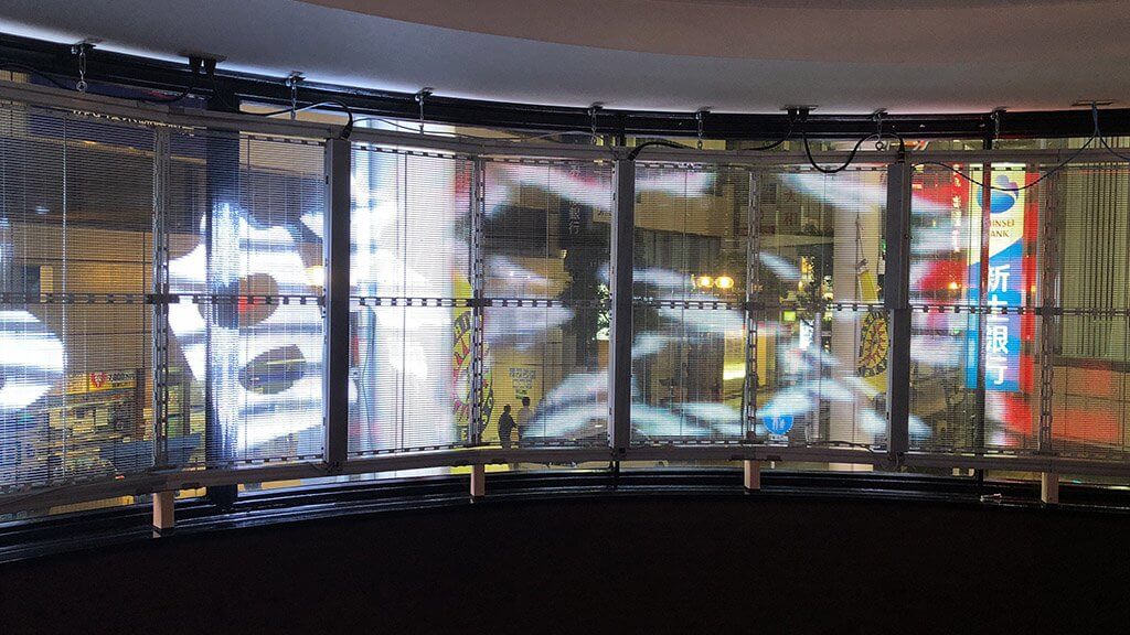 湾曲部分を含む、横16メートル×縦1メートルのシースルービジョンが実現しました。