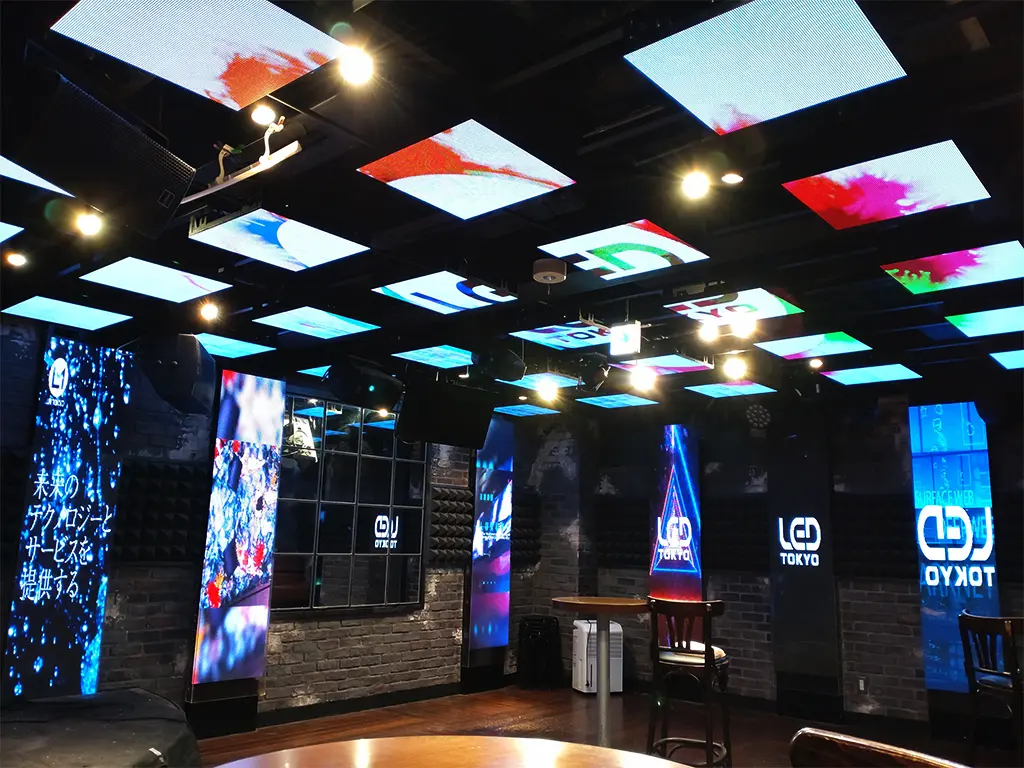 店内にはLEDビジョンがたくさん設置してあり、最高の演出の中でグループはもちろんお一人様でも楽しめます。