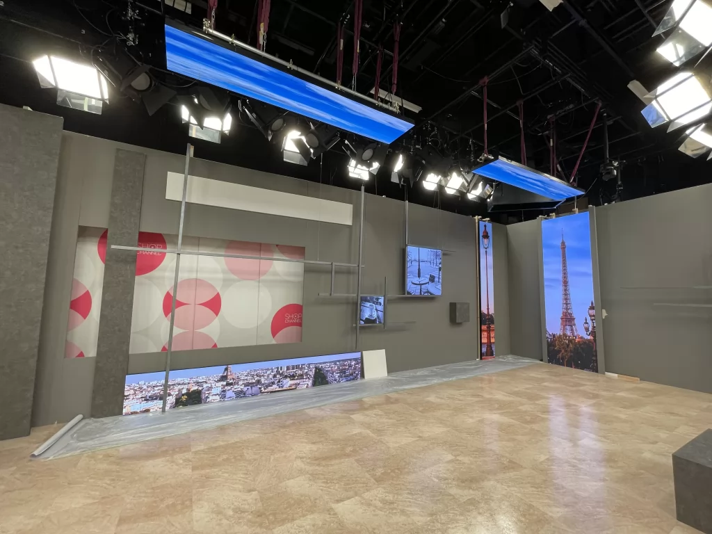 スタジオにはサイズ、設置方法さまざまなLEDビジョンを導入しました。