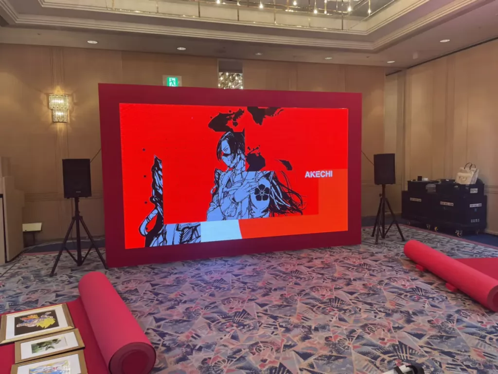 今回は”アニメ”を題材としたNFTイベントでLEDビジョンを導入しました。幅広いクリエイターから公募で集められた多彩なNFT作品が出展されました。