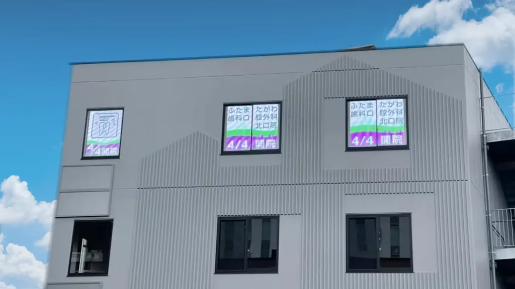 2022年4月4日(月)に開院した、ふたまたがわ歯科口腔外科北口院の窓面3カ所にウィンドウビジョンを導入しました。