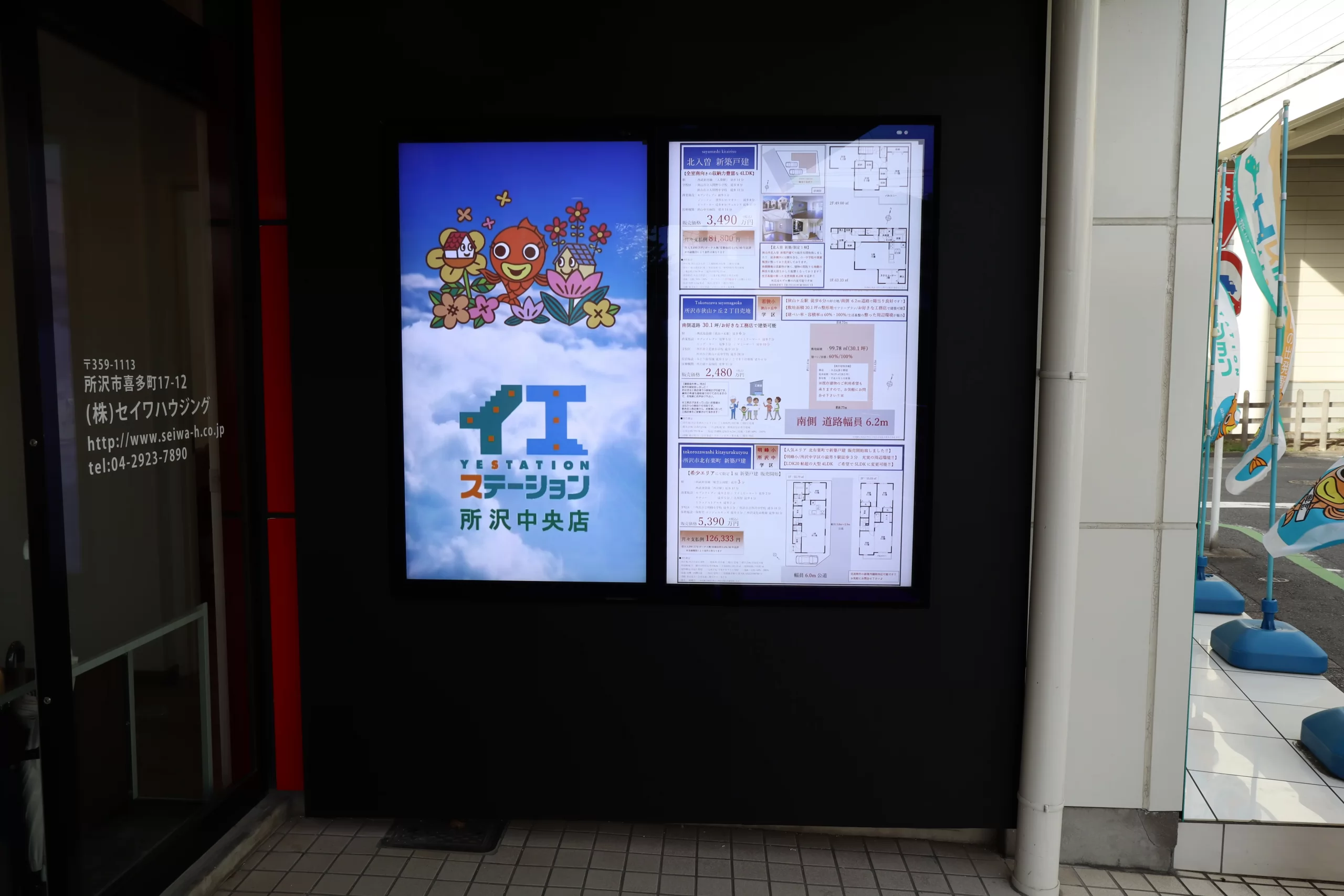 埼玉県所沢市にある株式会社セイワハウジングが運営する「イエステーション所沢中央店」に屋外用液晶ディスプレイを導入しました!