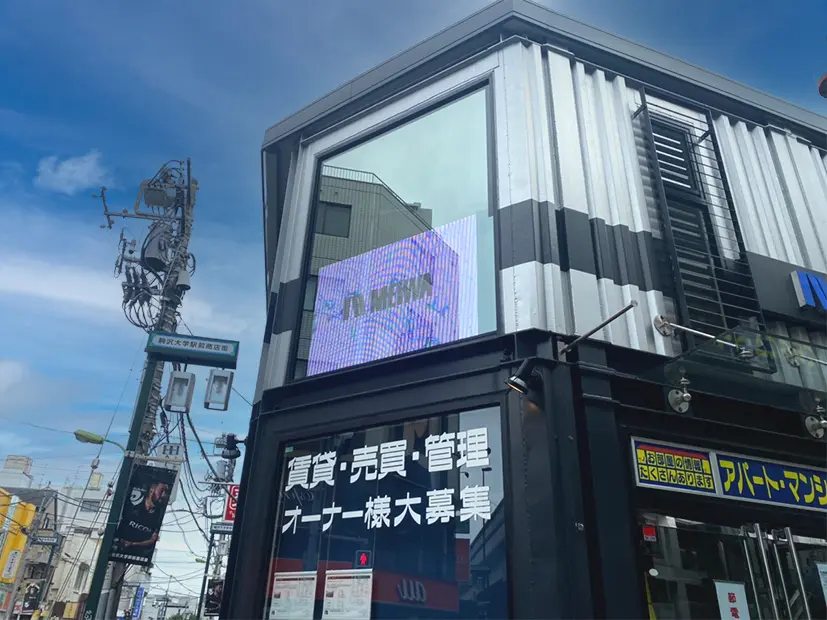 東京都世田谷区にある株式会社明和住販流通センターが運営する「第8明和ビル」の2階窓面にウィンドウビジョンを導入しました。