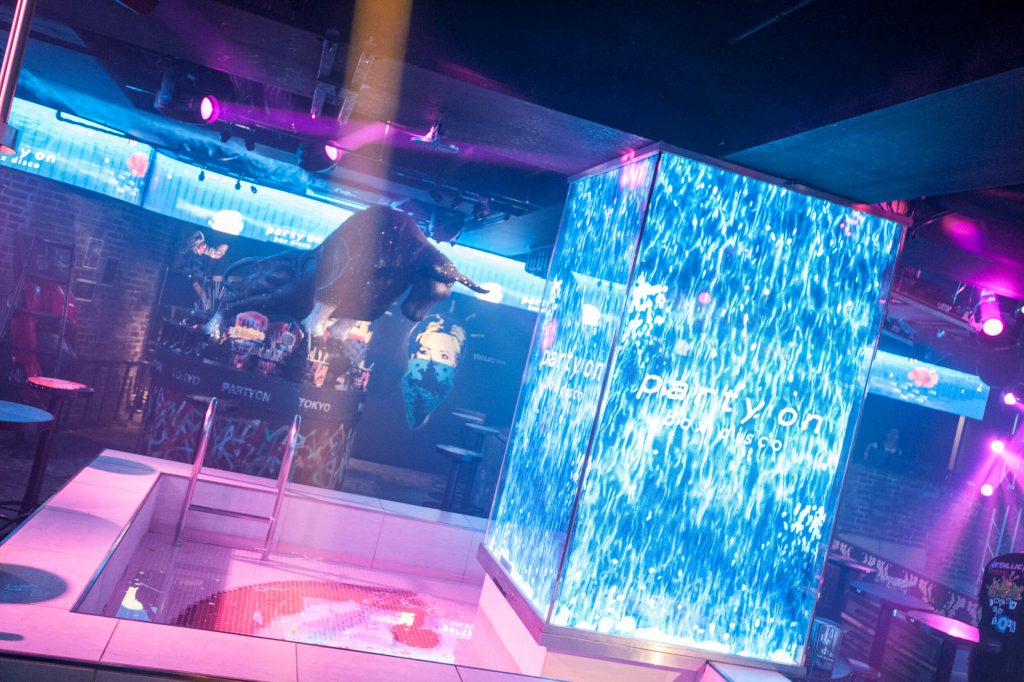 オープニングのド派手な演出ではすべてのLEDビジョンが使用されていますが、プログラムごとに、「吊りと床の組み合わせ」や、弊社の提案を受け導入された「透過型LEDビジョンと床の組み合わせ」などが使いわけられ、それぞれに魅力たっぷりの演出を実現しています。