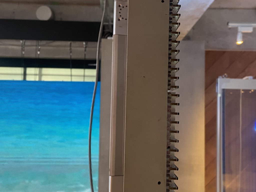 通常のLEDビジョンと違い、本体がブラインドカーテンのようなシースルータイプなので、窓面においても自然光を遮らないので、部屋に光が入ります。また、本体自体がとても薄いので、狭い場所でも場所を気にせず導入が可能です。