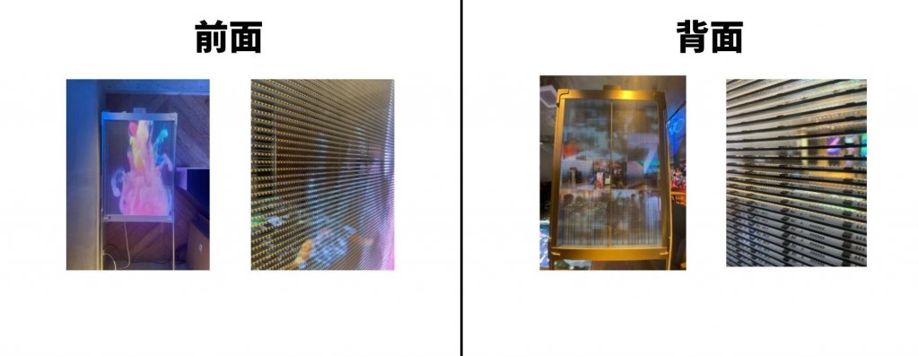 ウィンドウビジョンは窓面に設置しても自然光を遮ることなく前面から見ると通常のLEDビジョン同様きれいな映像を映し出し、背面からみるとシースルータイプになっているLEDビジョンです。