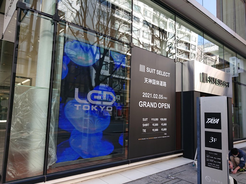 2021年2月5日、福岡県天神地区の国体道路沿いにオープンした『SUIT SELECT 天神』にLEDビジョンを導入しました。
